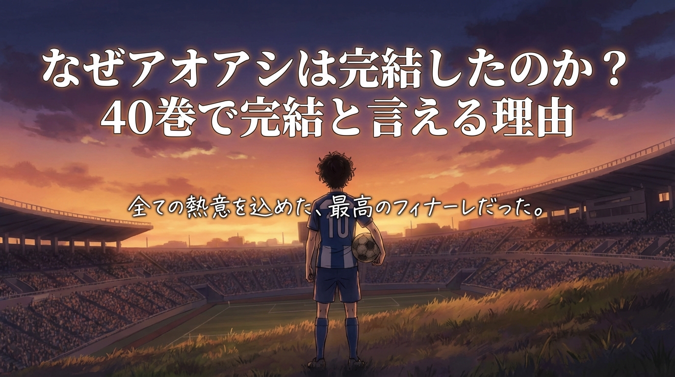 打ち切りの理由は存在しない。アオアシは作者・小林有吾が11巻時点から構想していたラストに向かい、全40巻で計画通りに完結した作品だ。「打ち切り」の噂は休載の多さ・前作の打ち切り経験・完結発表の勘違いが原因で広まった誤解にすぎない。