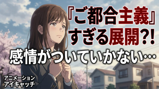 これが「ご都合主義」と言われる理由だ。感動のゴールに向かって、都合よく整えられたキャラクターに見えてしまう。物語の着地点が先にあって、そこに辿り着くために主人公の感情がコントロールされている——その不自然さに気づいた人が「ひどい」と感じるんだ。