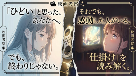 「ひどい」と感じたあなたは、おそらく物語に対してフェアな目を持っている人だ。ご都合主義を許さず、人物の感情にリアリティを求め、安易な泣かせ演出に心を閉ざせる人だ。それは映画の欠点を正確に見抜く、まっとうな感性だ。